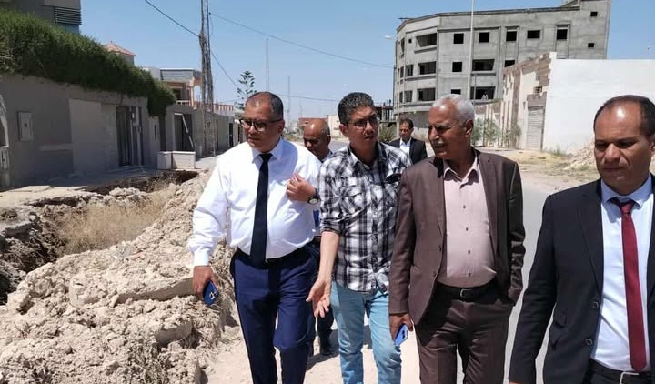 زار والي قابس رضوان نصيبي يوم 13 أفريل 2026 قابس الجنوبية وعاين بحي الممرضين بحضور السادة معتمد قابس الجنوبية مصباح الصغير وعضو مجلس نواب الشعب ثامر مزهود والمدير الجهوي للتجهيز والاسكان جمال بن ابراهيم تسربا مائيا بهذا الحي تسبب في اشكاليات عديدة.