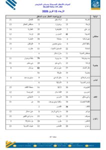 نشر المعهد الوطني للرصد الجوي اليوم الأربعاء، قائمة لكميات الأمطار المسجلة من يوم الثلاثاء 14 أفريل 2026 على الساعة 07 صباحا إلى يوم الأربعاء 15 أفريل 2026 على الساعة 07 صباحا :