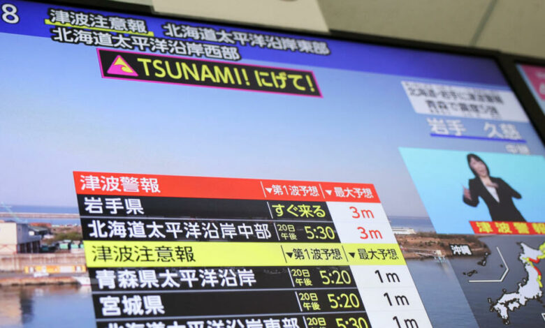 وحذرت الوكالة من احتمال حدوث موجات مد عاتية “تسونامي” بارتفاع يصل إلى 3 أمتار في محافظة إيواتيه وأجزاء من هوكايدو.